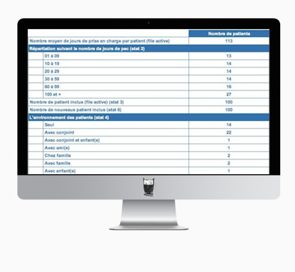 Il assure le suivi des usagers (patients, aidants, professionnels de santé, …) et permet l’évaluation (rapports d’activité, tableaux de statistiques) du fonctionnement du Réseau remise aux tutelles chaque année (ARS, Conseil Général, …)